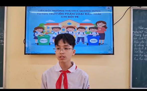 Liên đội TH&THCS Quang Hưng triển khai tuyên truyền phân loại rác thải bằng hình ảnh – video hỗ trợ AI, giúp học sinh tiếp thu sinh động và trực quan hơn.