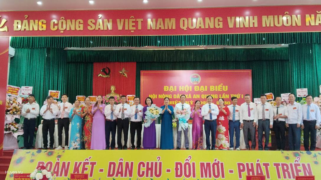 Tham dự Đại hội có đồng chí Đào Xuân Anh – Phó Chủ tịch Hội Nông dân thành phố Hải Phòng, các đồng chí Ủy viên Ban Thường vụ Hội Nông dân thành phố, cán bộ phụ trách xã An Quang; Đại biểu xã đồng chí Nguyễn Trọng Tuấn – Bí thư Đảng ủy, Chủ tịch HĐND xã, đồng chí Nguyễn Thị Nhung – Phó Bí thư Thường trực Đảng ủy, đồng chí Nguyễn Quốc Thịnh – Phó Bí thư Đảng ủy, Chủ tịch UBND xã, các đồng chí Ủy viên Ban Thường vụ Đảng ủy, Phó Chủ tịch UBND xã; đại biểu lãnh đạo các cơ quan, đơn vị, các phòng, ban, ngành, đoàn thể của xã; Bí thư các chi bộ, Trưởng các thôn, cùng các đồng chí nguyên là Chủ tịch Hội Nông dân các xã Quốc Tuấn, Quang Trung, Quang Hưng nghỉ và chuyển công tác khi thực hiện mô hình chính quyền 2 cấp. Đại hội có 102 đại biểu chính thức – là những cán bộ, hội viên nông dân ưu tú, tiêu biểu đại diện cho ý chí, nguyện vọng của hơn 3.000 cán bộ, hội viên nông dân trong toàn xã về dự.