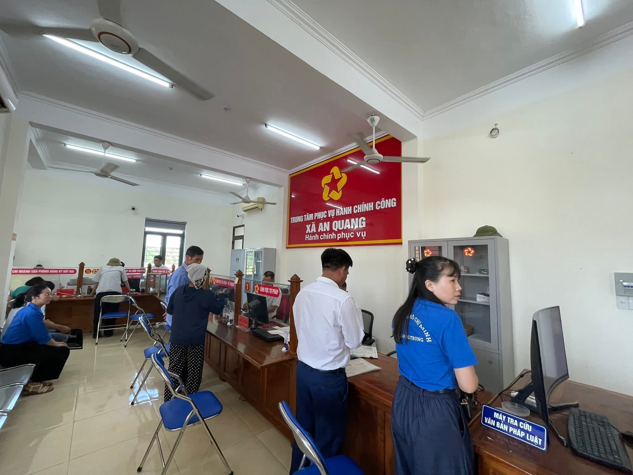 Điểm nhấn nổi bật trong bức tranh đổi mới của An Quang là việc ứng dụng công nghệ thông tin mạnh mẽ trong hoạt động quản lý, điều hành. 100% văn bản hành chính được số hóa, ký số và gửi nhận qua hệ thống điện tử; toàn bộ cán bộ, công chức sử dụng chữ ký số, phần mềm văn phòng điện tử trong xử lý công việc hàng ngày. Hệ thống hạ tầng công nghệ thông tin được đầu tư đồng bộ với mạng cáp quang băng thông rộng, đảm bảo truyền tải dữ liệu ổn định, an toàn. Trung tâm Phục vụ hành chính công của xã được đầu tư trang thiết bị tương đối đầy đủ như máy tính, máy tra cứu thủ tục, camera giám sát, phần mềm Một cửa điện tử. Cán bộ, công chức tại đây được tập huấn kỹ năng giao tiếp, hướng dẫn công dân thực hiện dịch vụ công trực tuyến, thanh toán phí, lệ phí điện tử qua Cổng Dịch vụ công Quốc gia. Nhờ vậy, người dân đến giao dịch đều cảm nhận rõ sự chuyên nghiệp, thân thiện và minh bạch trong cung cách phục vụ.