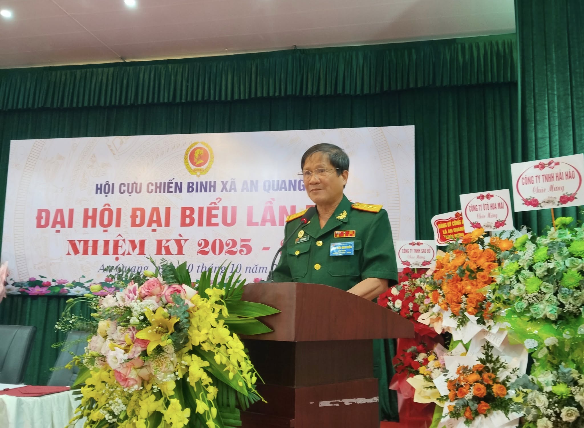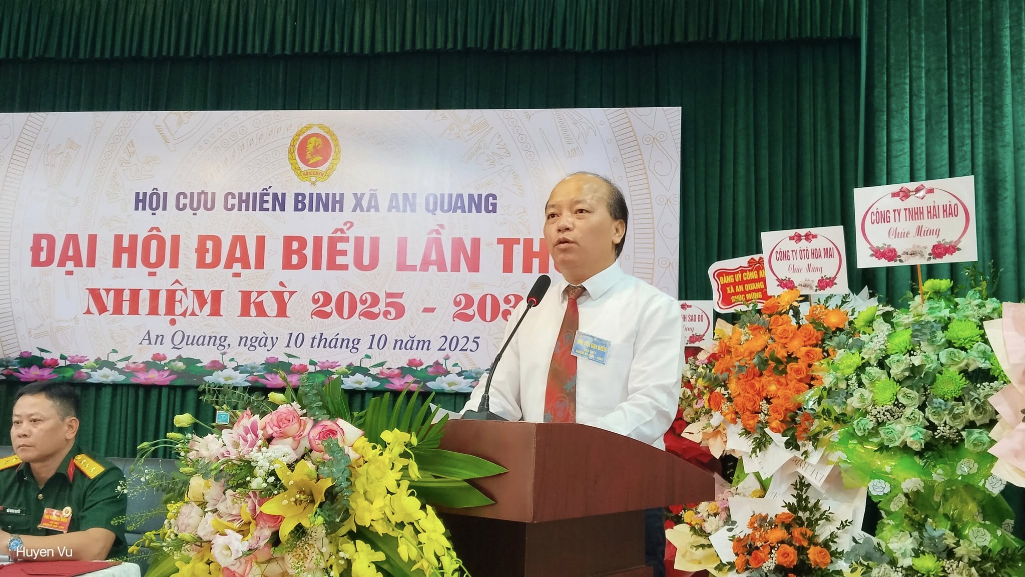 Phát biểu chỉ đạo Đại hội đồng chí Nguyễn Trọng Tuấn – Bí thư Đảng ủy, Chủ tịch HĐND xã An Quang , ghi nhận và biểu dương những kết quả, thành tích mà Hội Cựu chiến binh xã đạt được trong nhiệm kỳ qua. Đồng chí nhấn mạnh, các cấp Hội cần tiếp tục phát huy truyền thống “Bộ đội Cụ Hồ”, nêu cao tinh thần trung thành, gương mẫu, đoàn kết, đổi mới, tích cực tham gia xây dựng Đảng, chính quyền vững mạnh, giữ vững ổn định chính trị – xã hội, góp phần xây dựng quê hương ngày càng phát triển. Đồng chí cũng yêu cầu Ban Chấp hành khóa mới tập trung đổi mới nội dung, phương thức hoạt động của Hội, chăm lo tốt hơn đời sống vật chất, tinh thần cho hội viên, đẩy mạnh các phong trào thi đua yêu nước gắn với các nhiệm vụ chính trị của địa phương.