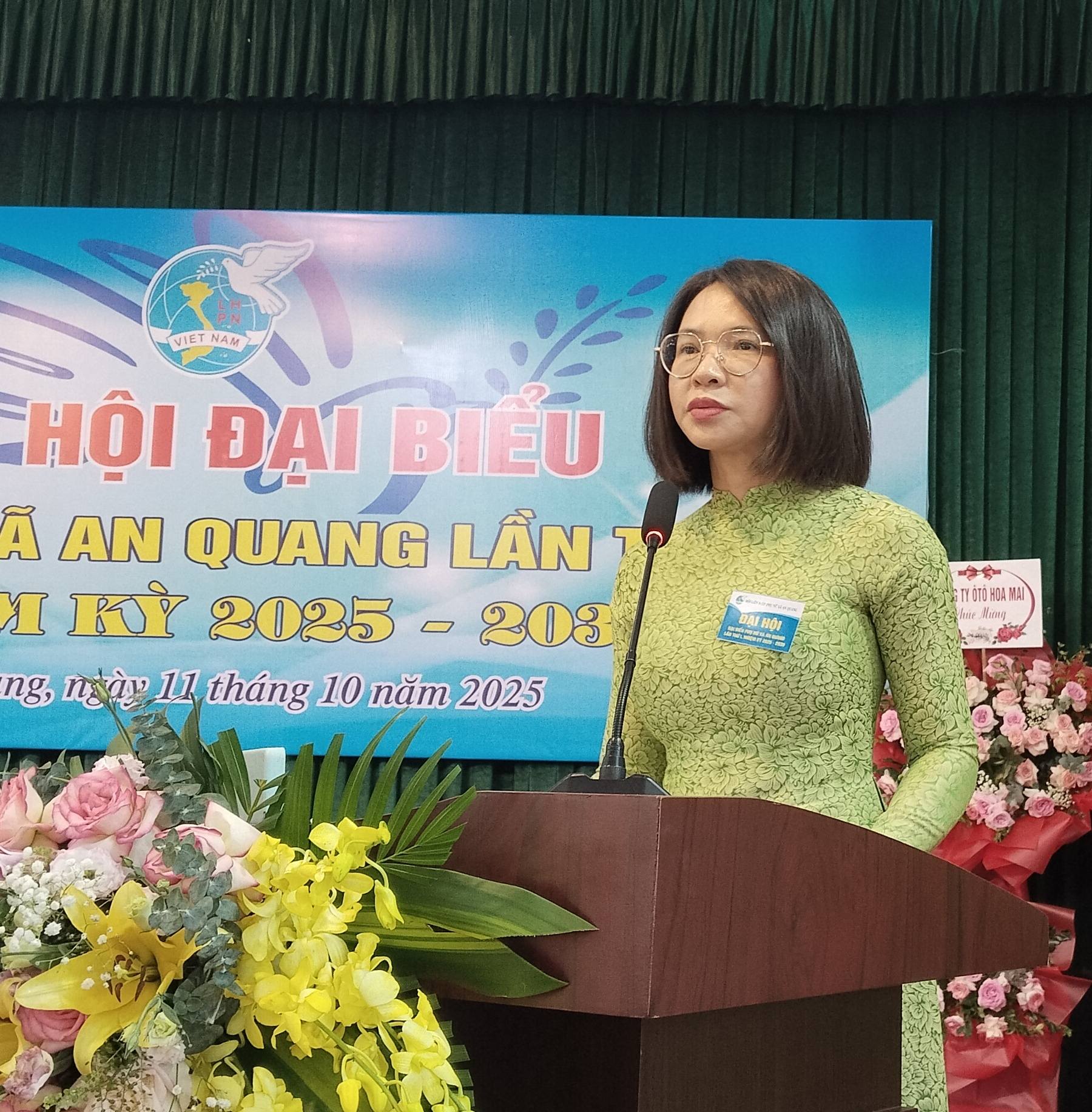 Đại biểu xã An Quang, dự Đại hội có đồng chí Nguyễn Trọng Tuấn – Bí thư Đảng ủy, Chủ tịch HĐND xã; đồng chí Nguyễn Thị Nhung – Phó Bí thư Thường trực Đảng ủy; cùng các đồng chí Ủy viên Ban Thường vụ Đảng ủy, lãnh đạo UBND xã, đại diện các ban, ngành, đoàn thể, Bí thư chi bộ, Trưởng các thôn và 115 đại biểu chính thức đại diện cho hơn 8.000 hội viên phụ nữ trong toàn xã.
