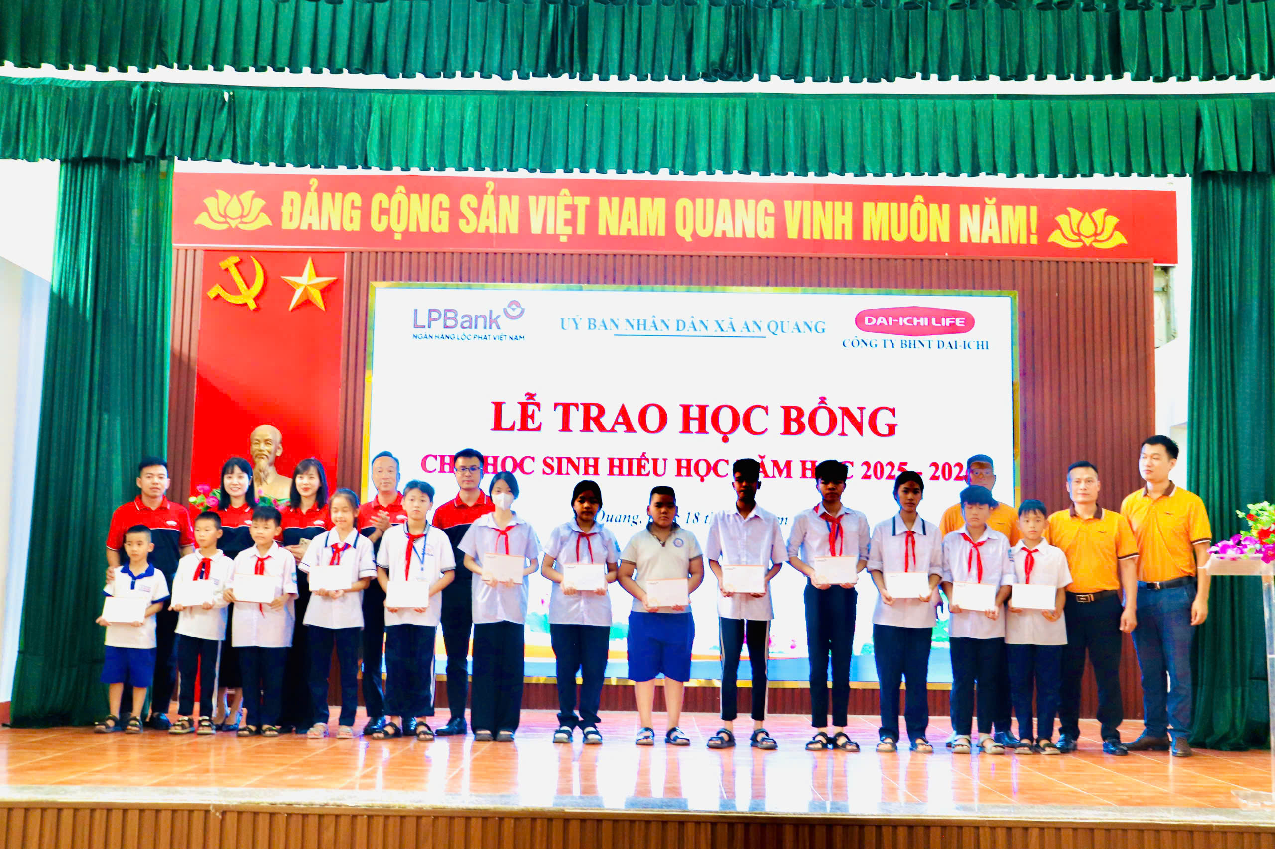 Hòa chung không khí khai giảng năm học mới 2025 – 2026, Đảng ủy – HĐND – UBND – Ủy ban MTTQ xã An Quang đã phối hợp cùng các đơn vị, doanh nghiệp và các nhà hảo tâm tổ chức chương trình trao học bổng cho học sinh hiếu học.