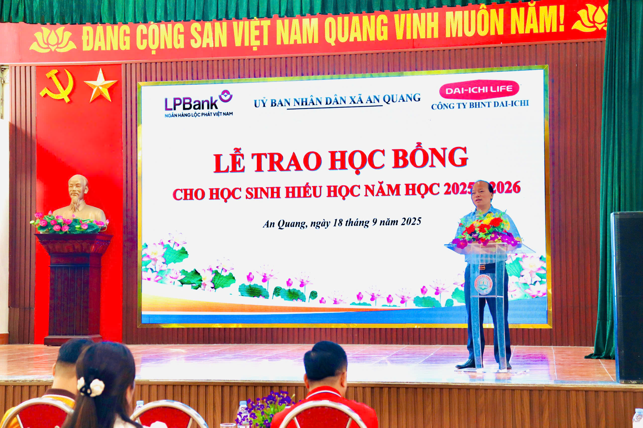 Phát biểu tại buổi lễ, đồng chí Nguyễn Trọng Tuấn – Bí thư Đảng ủy xã khẳng định: “Những suất học bổng hôm nay không chỉ là sự hỗ trợ về vật chất, mà còn là nguồn động viên tinh thần to lớn, tiếp thêm niềm tin cho các em học sinh tiếp tục nỗ lực trên con đường học tập.” Những phần quà ý nghĩa này là minh chứng cho tinh thần “lá lành đùm lá rách”, sự đồng hành của cấp ủy, chính quyền và doanh nghiệp với sự nghiệp giáo dục, góp phần tạo nền tảng vững chắc cho tương lai con em quê hương An Quang.